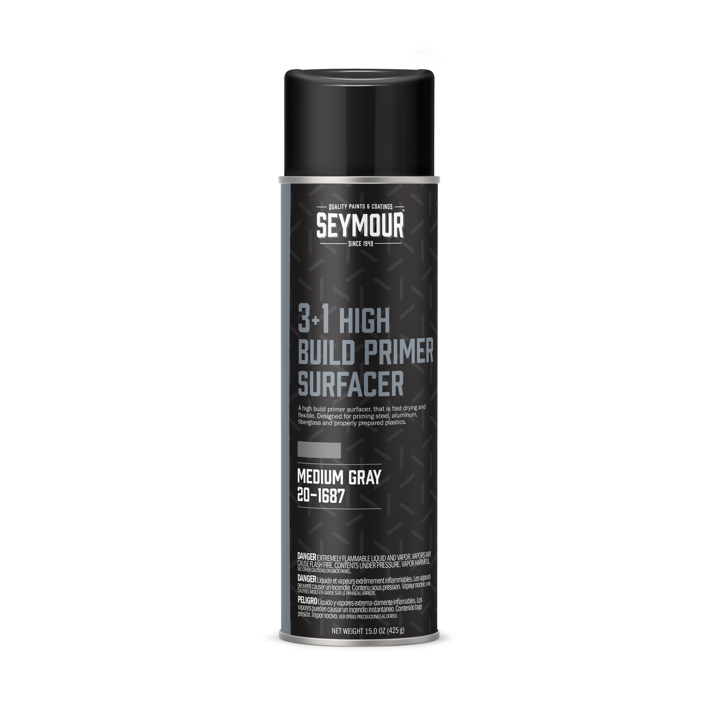 Seymour’s Medium Gray Professional 3+1 High Build Primer Surfacer Spray lets you prime, seal, and fill in one step. It’s a flexible acrylic auto body primer designed for professional collision repair and refinishing applications. With Seymour 3+1, technicians get a primer that helps them streamline their workflow without sacrificing quality or results.