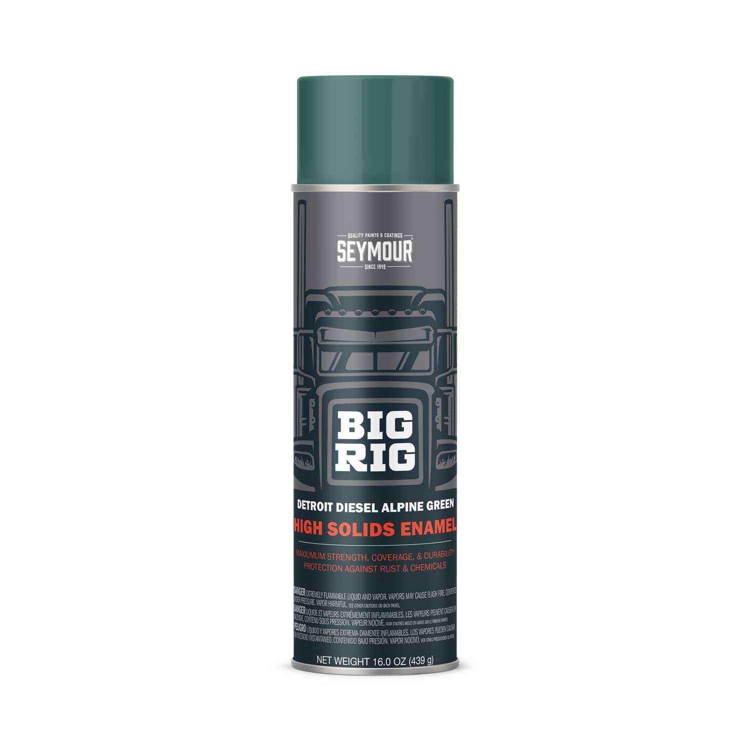 Seymour has been the trusted name in coatings since 1949, and we don’t plan on giving that up anytime soon. Our Big Rig Detroit Diesel Alpine Green Heavy-Duty Engine Enamel Spray Paint is built for industrial-strength performance, featuring a high solids formula that delivers superior coverage, durability, and protection.