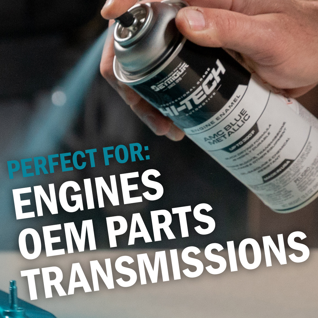 We launched Seymour’s automotive division 60 years ago. Suffice it to say—we know what we’re doing when it comes to engine enamels and aerosol spray paint. Our Hi-Tech AMC Blue Metallic Engine Enamel Spray Paint is top-of-the-line and perfect for restoring your engine, transmission, and OEM parts to their original factory color.