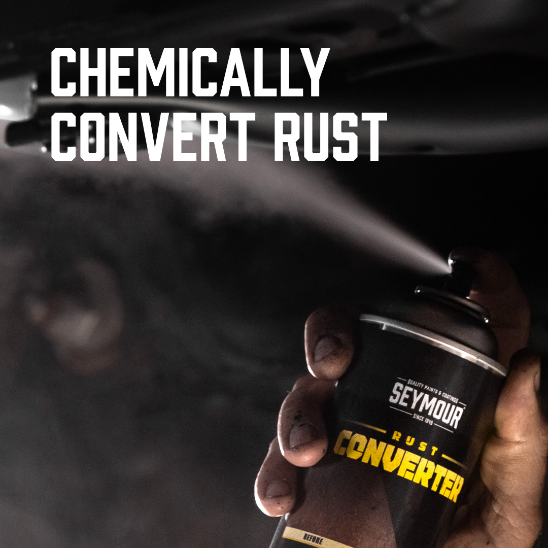 Our rust primer converter simplifies restoration by eliminating extensive wire brushing and sanding, and it’s ideal for a wide range of applications, from undercarriages to railings. Apply the rust converter spray paint to restore surfaces and protect them against corrosion. With Seymour, achieve durable, long-lasting results and a like-new finish with less effort.