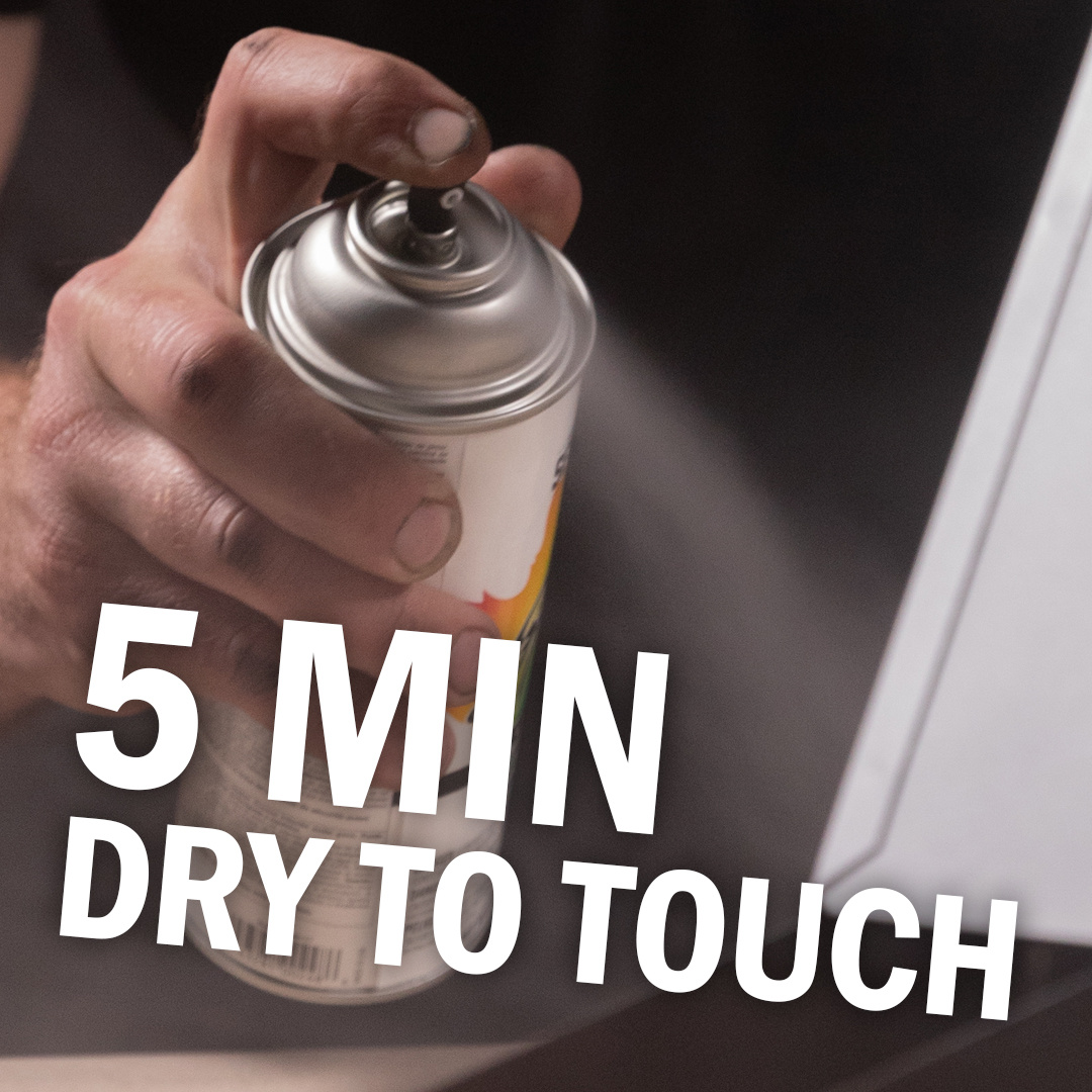 Work smarter and finish faster. Spruce General-Purpose Enamel Spray Paint dries to the touch in about 5 minutes and is ready to recoat in about 30 minutes. So you can move from coat to coat with minimal downtime. Each 12‑oz can covers up to 15 square feet, depending on surface texture and application technique.